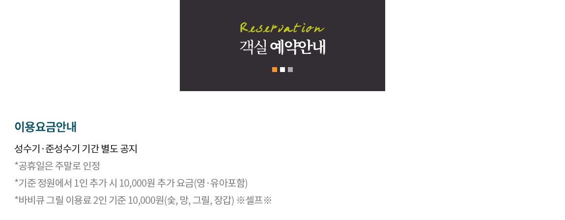 객실명 | 인원 | 비수기 | 성수기 | ||||||||