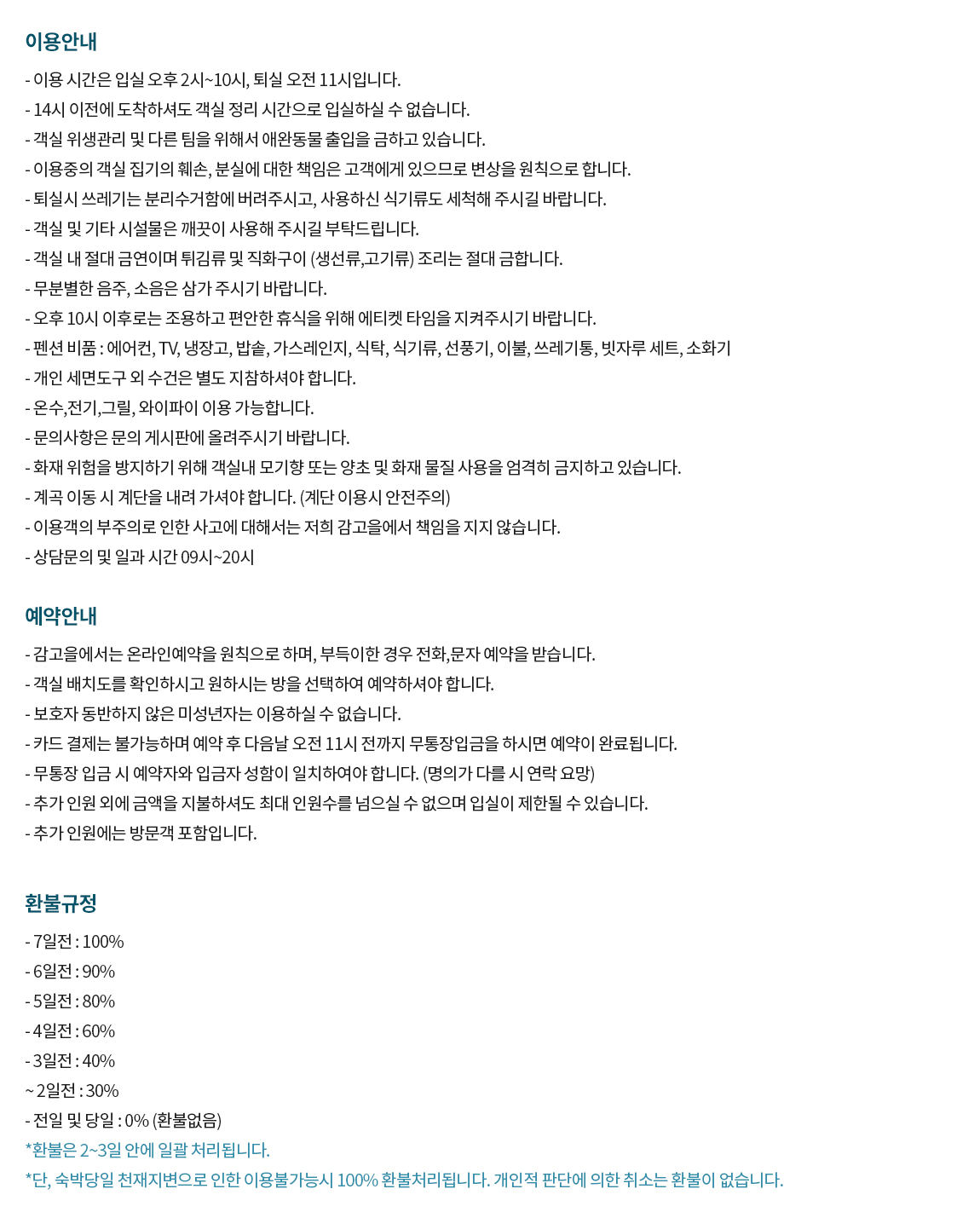 리치(독채쓰리룸) | 6 | 8 | 300,000 | 350,000 |